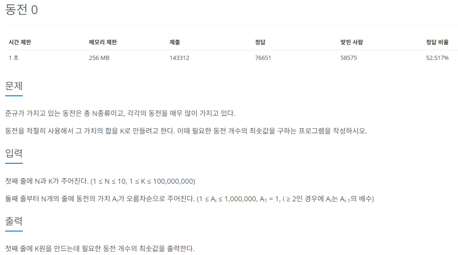 예제1: [백준 11047] 동전 0