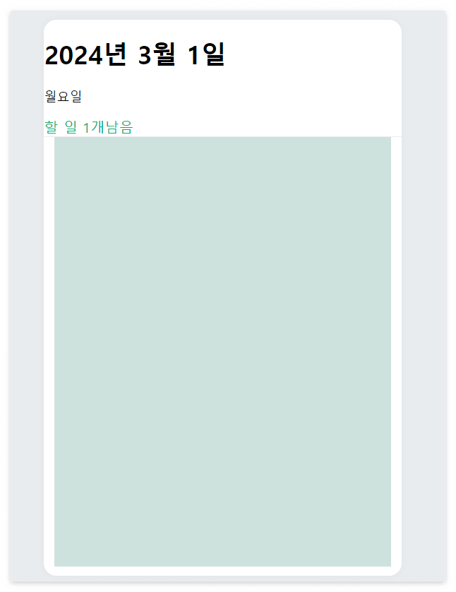 - TodoHead: TodoTemplet 박스안의 상단에서 오늘 날짜 등의 주요 정보를 나타내는 컴포넌트입니다.