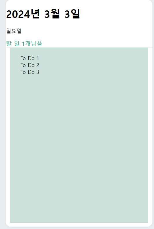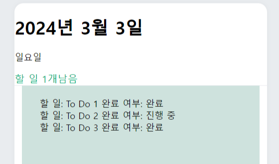 <div>할 일: {task} 완료 여부: {isDone}</div>