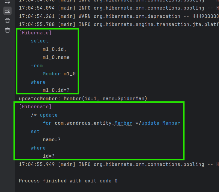 먼저 해당 엔티티를 찾기 위한 SELECT 쿼리가 정상적으로 수행되었고,