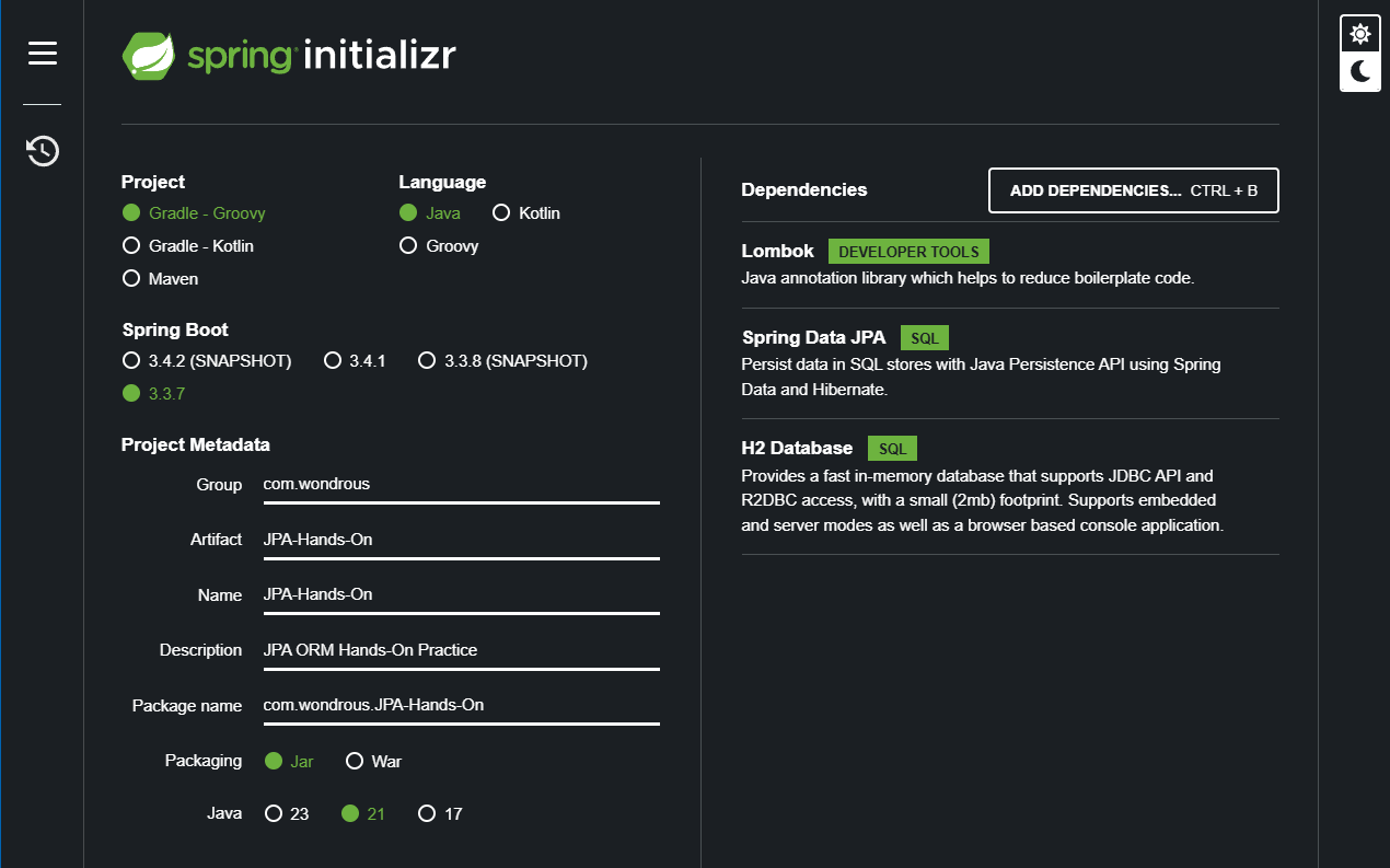 위 사이트에서 스프링부트 프로젝트를 간단히 생성할 수 있습니다.