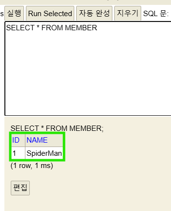 먼저 DB에 접속하여 MEMBER 테이블을 SQL로 직접 생성해야 합니다.