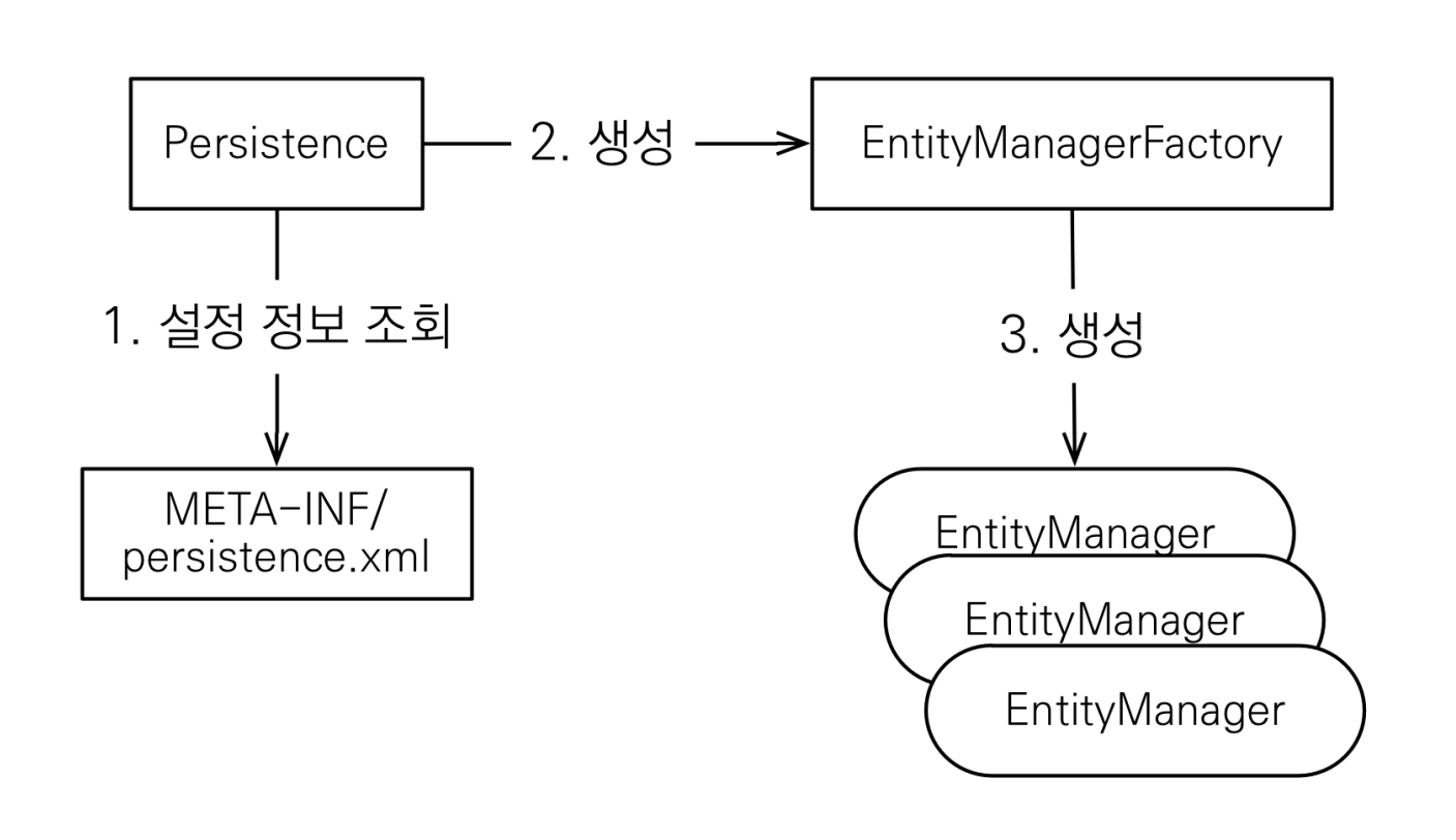 - createEntityManager(): 엔티티매니저 팩토리로부터 엔티티매니저를 가져오는 코드