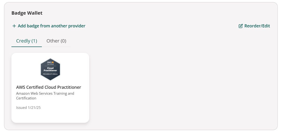 위처럼, 점수 보고서, 뱃지 획득, 다음 시험인 SAA 50% 할인권에 대한 안내 메일이 옵니다. 안내 사항에 따라 뱃지를 등록하면 링크드인과 연동하여 뱃지를 등록할 수 있습니다.