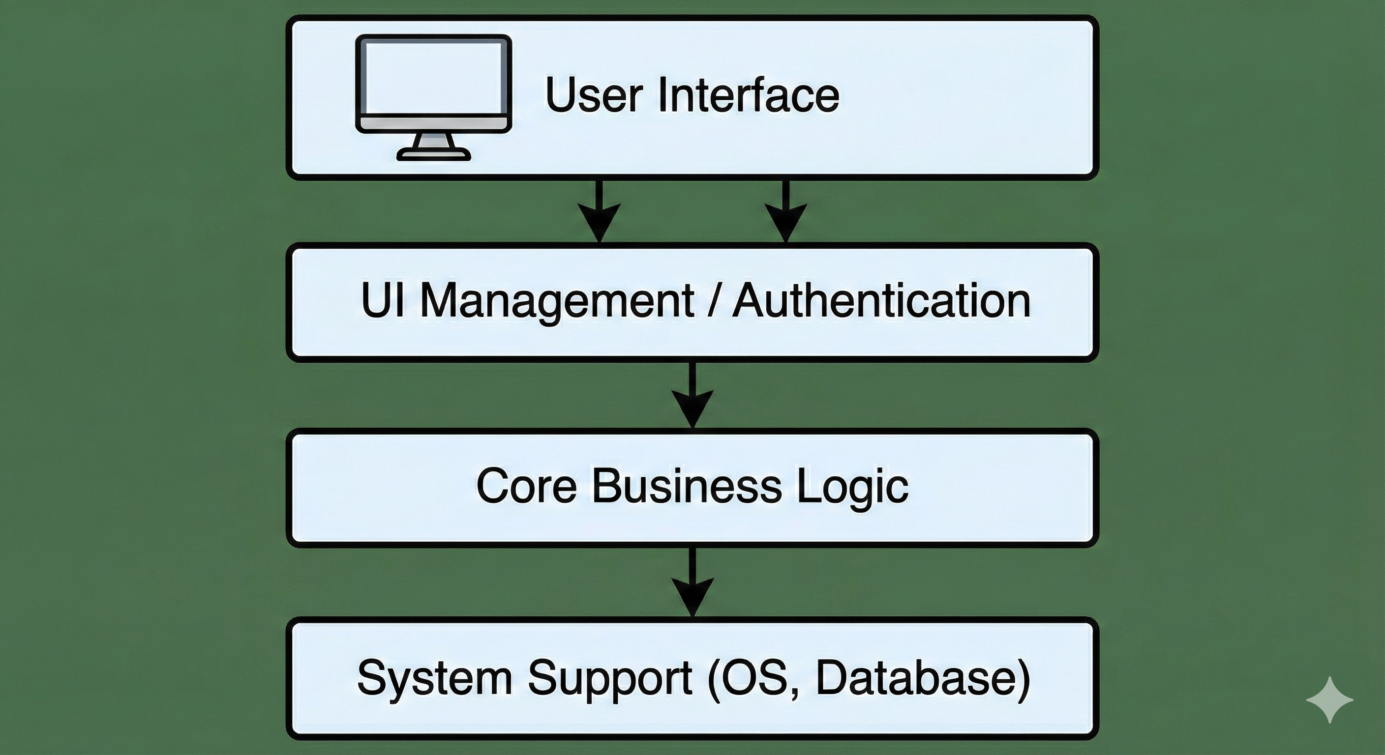 - 4계층 (System Support/Database): 실제 은행 데이터베이스(DB)에 접속해서 잔액 데이터를 수정하고 저장합니다.