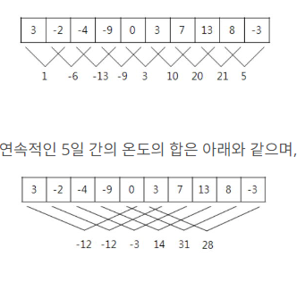 첫째 줄에는 두 개의 정수 N과 K가 한 개의 공백을 사이에 두고 순서대로 주어진다. 첫 번째 정수 N은 온도를 측정한 전체 날짜의 수이다. N은 2 이상 100,000 이하이다. 두 번째 정수 K는 합을 구하기