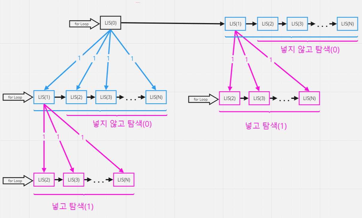 memozation을 적용하여 LIS() 함수를 정의하는 것이 핵심이다.
