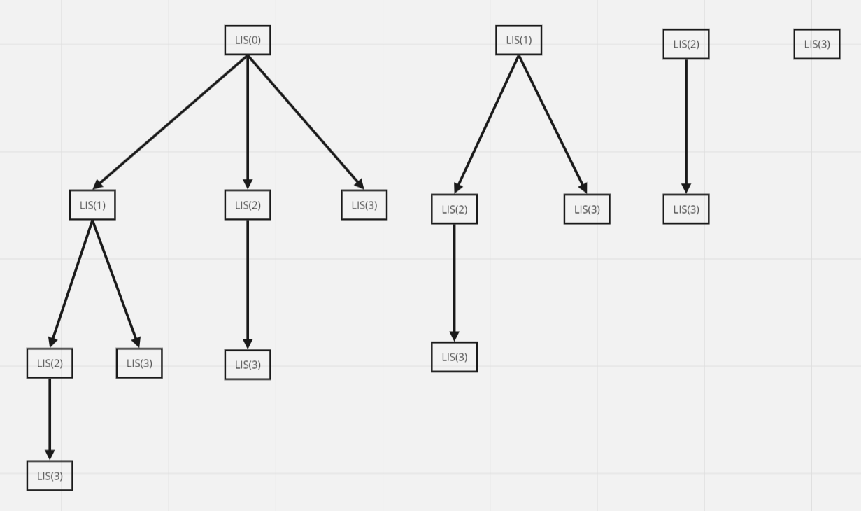 첫 번째 호출의 LIS의 길이는 3이 최대이므로 3을 반환한다.