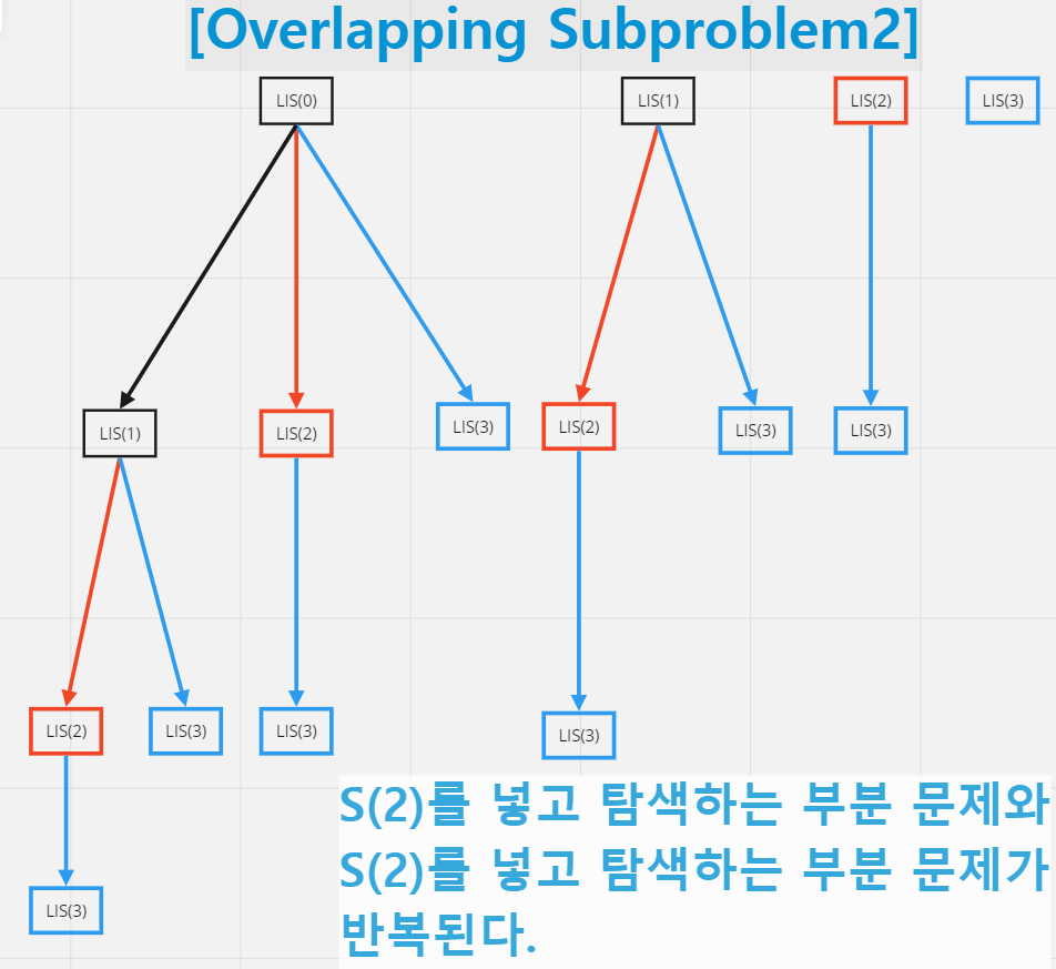따라서 각각의 하위 부분 문제들이 반복되는 것을 알 수 있다.